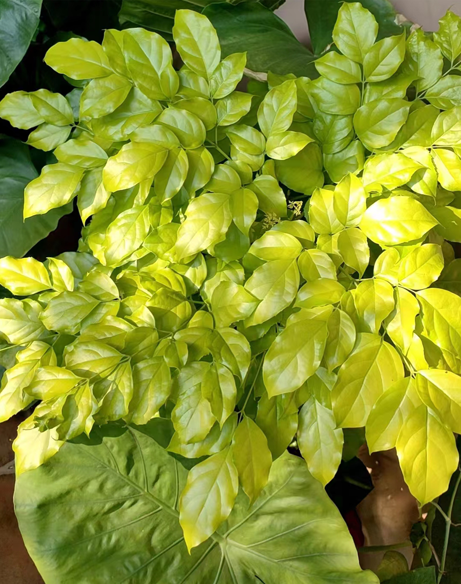 As long as there is sufficient light, the entire plant can be golden yellow within 1m. With insufficient light and the obstruction of surrounding and upper leaves, on a 1.5m plant, a gradual color change effect from light yellow, golden yellow, yellow-green to green will occur, which can greatly enhance the ornamental value of Golden Jasmin.